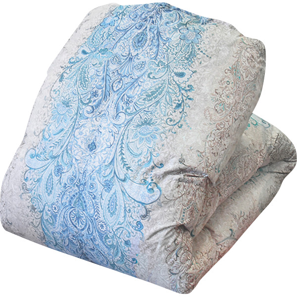 グレーグースダウン90%羽毛ふとんブルー