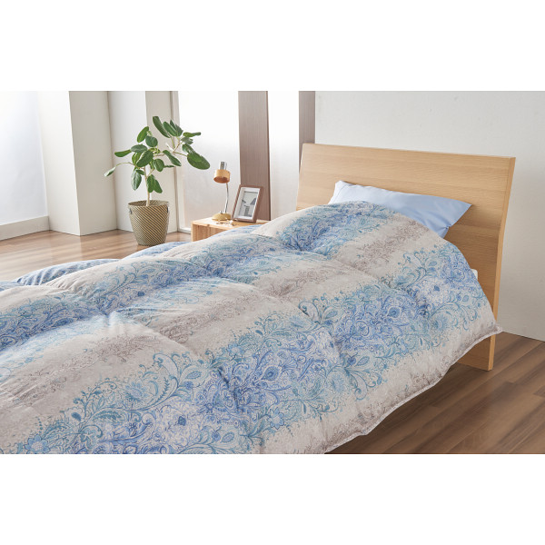 グレーグースダウン90%羽毛ふとんブルー