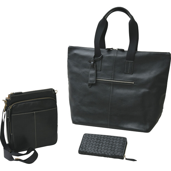良品工房 日本製牛革バッグ3点セットブラック