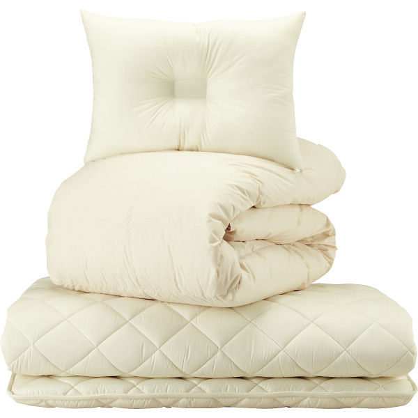 日本製羽毛ふとん(抗菌防臭羽毛使用)・エステル敷ふとん・枕 3点セット