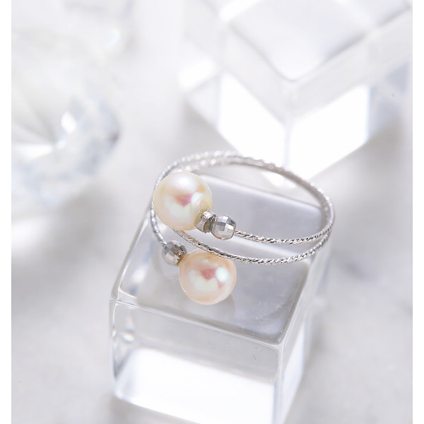 18金 伊勢志摩あこや本真珠2珠リングホワイトゴールド