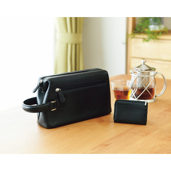 良品工房 日本製牛革ダレス型ポーチ小銭入れセットブラック