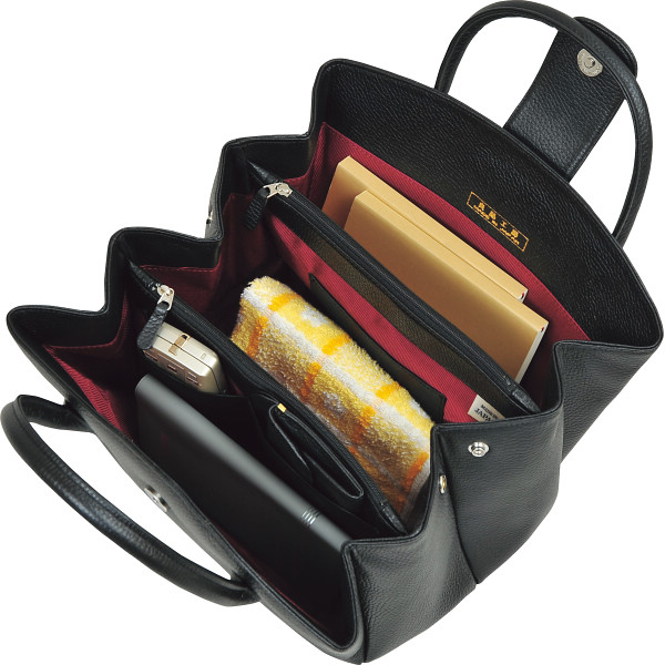 良品工房 日本製牛革ジャバラ式手提バッグブラック