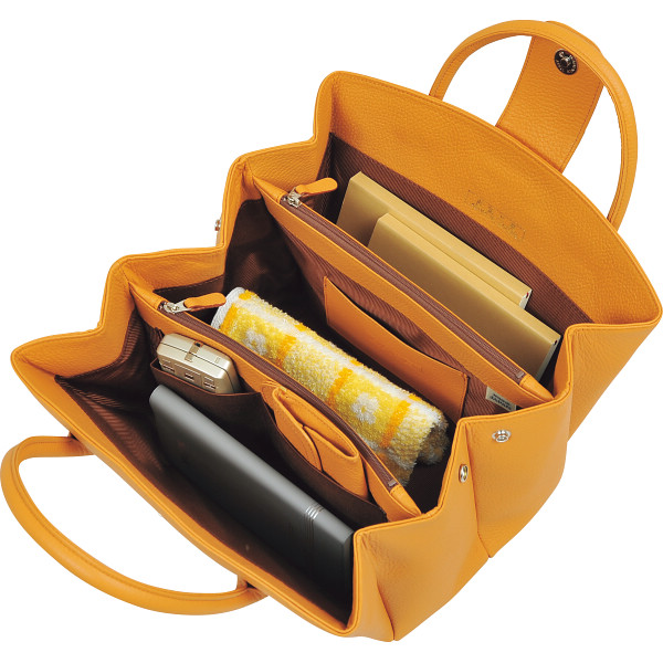 良品工房 日本製牛革ジャバラ式手提バッグキャメル