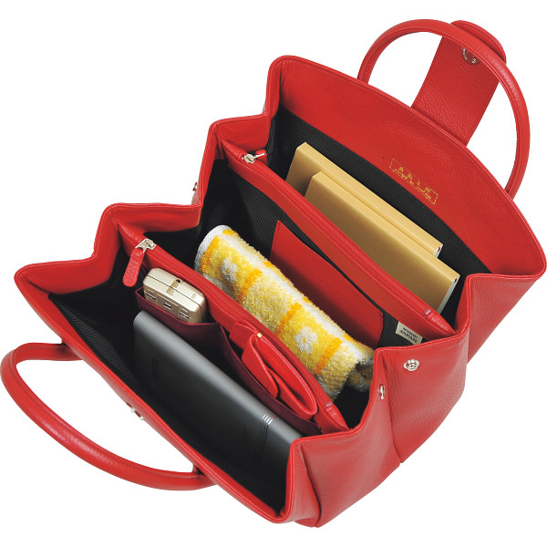 良品工房 日本製牛革ジャバラ式手提バッグレッド