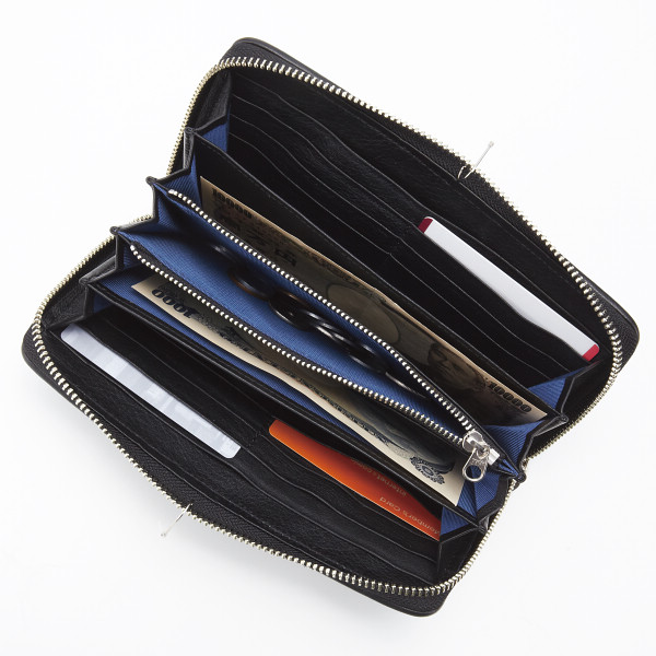 良品工房 日本製牛革編込みラウンド財布ブラック
