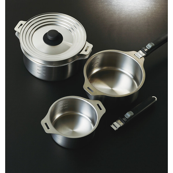 燕三 ハンドル着脱式鍋4点セット(蒸し台・中かご付)