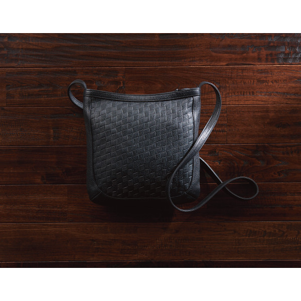 良品工房 日本製牛革型押しショルダーバッグブラック