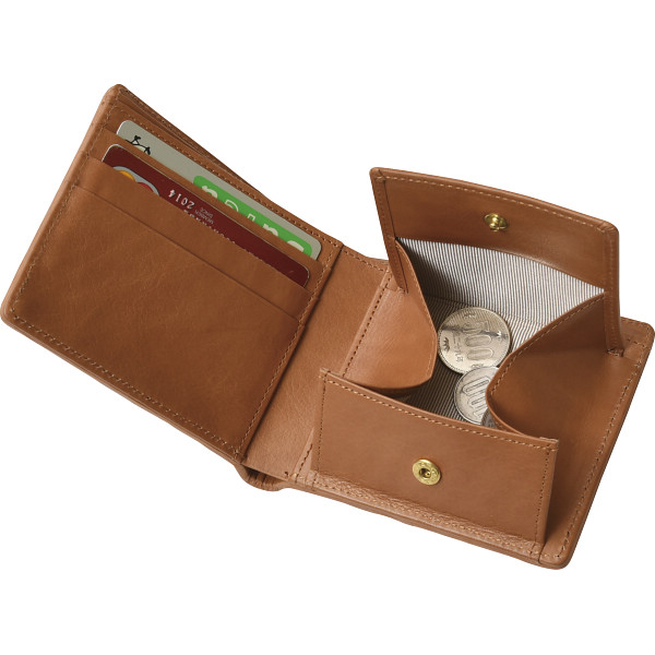 良品工房 日本製牛革編込二折れ財布キャメル