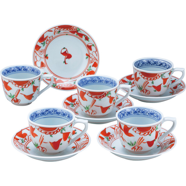 波佐見焼 夢万歴草華紋 珈琲碗皿5客揃
