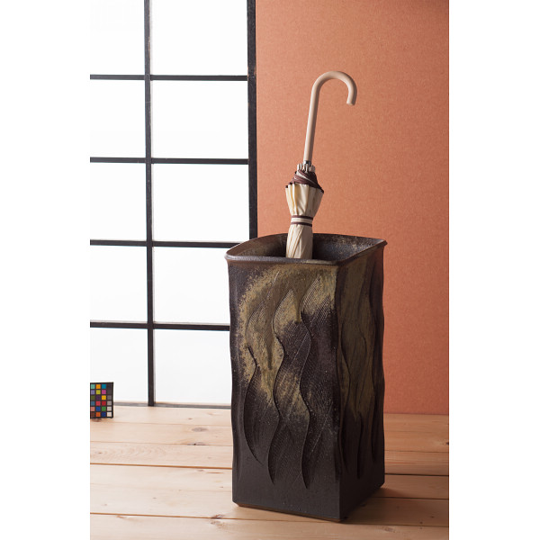信楽焼 傘立 四方窯変