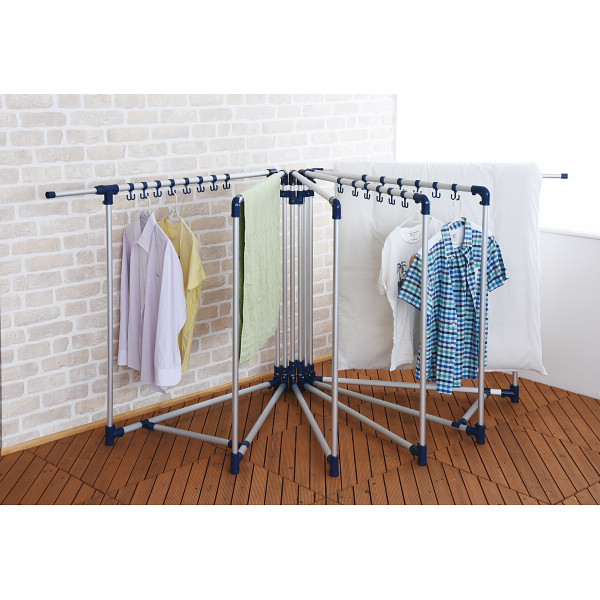 アルミ両端伸縮布団干し6面ネイビー