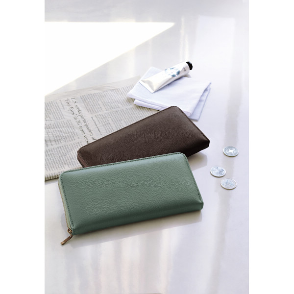姫路レザー 牛革ラウンドファスナー長財布チョコ
