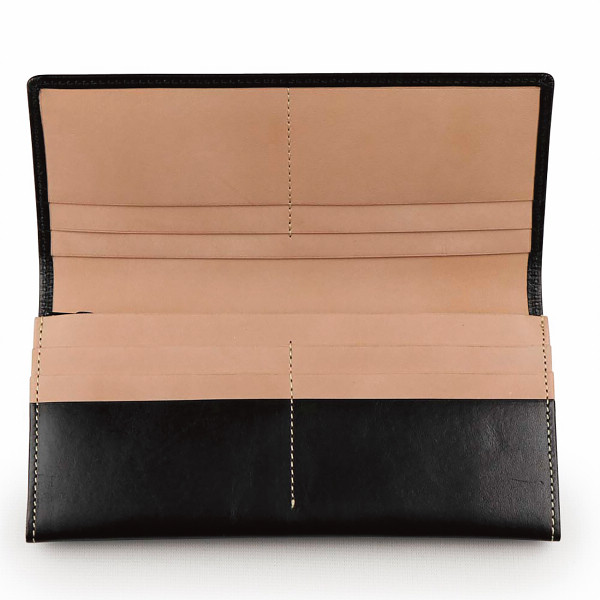 オイルレザーバイカラー長財布ブラック