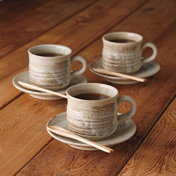 信楽焼 墨刷毛 碗皿5客揃