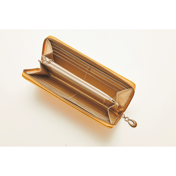 姫路レザー牛革ラウンドファスナー長財布マスタード