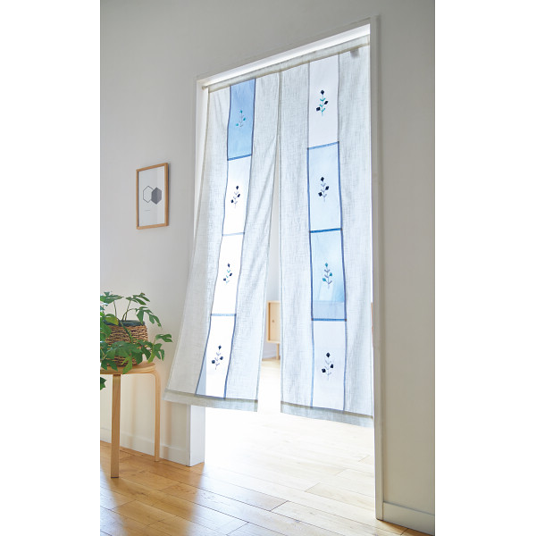 のれん2色セット(オーガンジーパッチワーク)ブルー×アイボリー