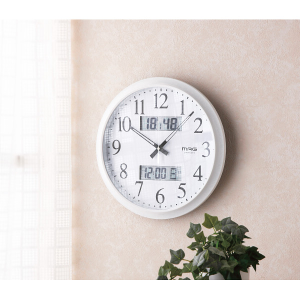 MAG 温度・湿度・カレンダー表示付電波時計ダブルリンクホワイト