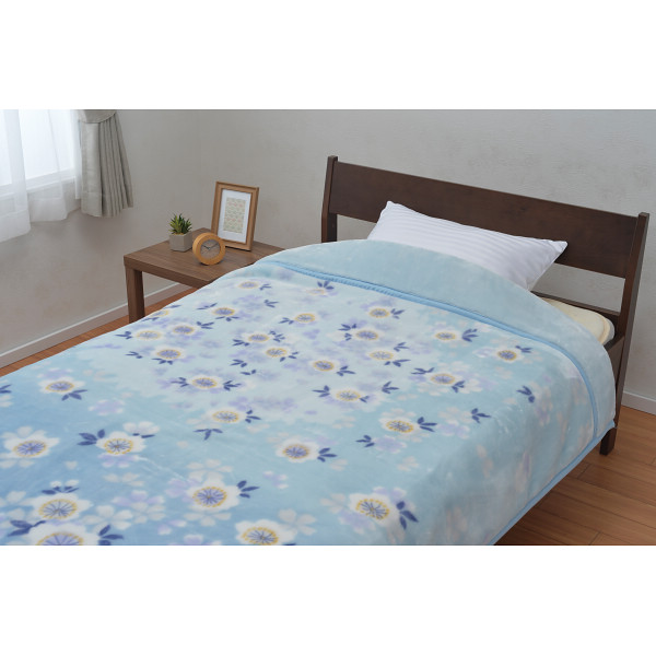 nishikawa 衿付きマイヤー合わせ毛布ブルー