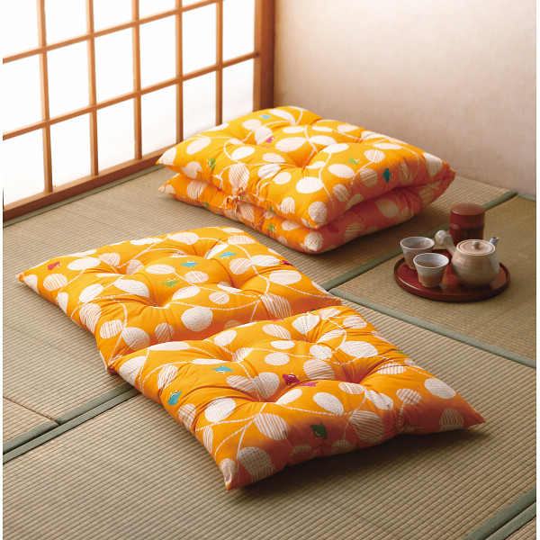たためる長座ぶとん2枚セット(ちどり)オレンジ
