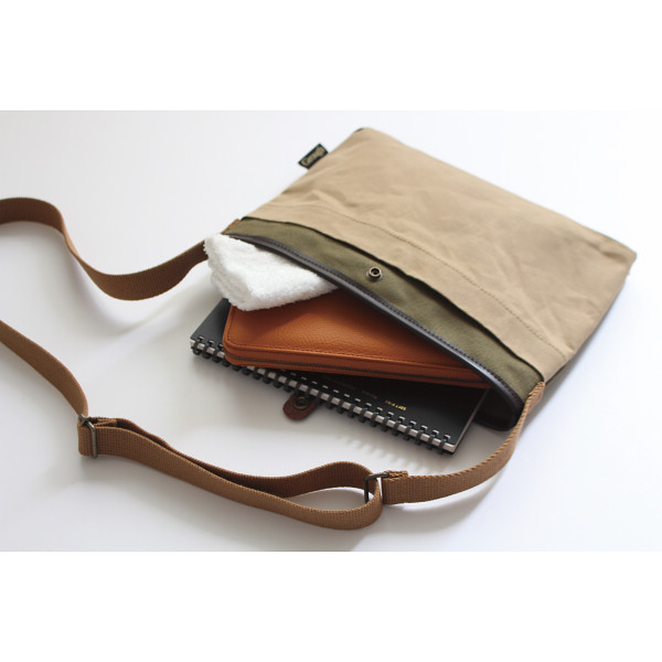そだてる帆布Grough サコッシュベージュ×カーキ