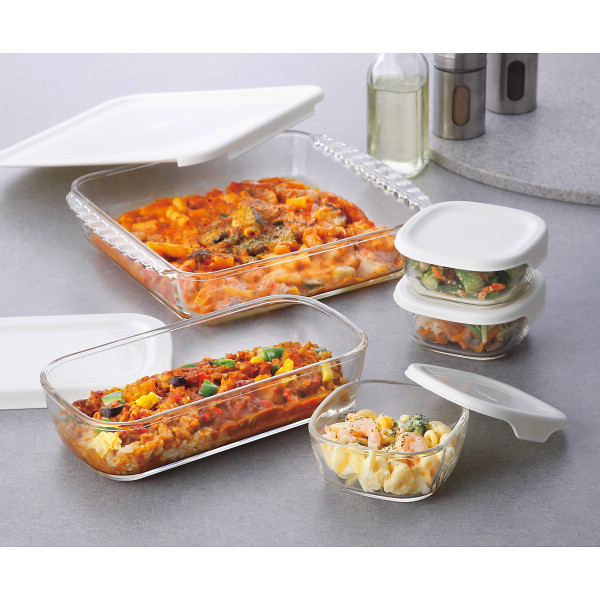 ハリオ スタッキング耐熱ガラスコンテナ・スクエア7個セット