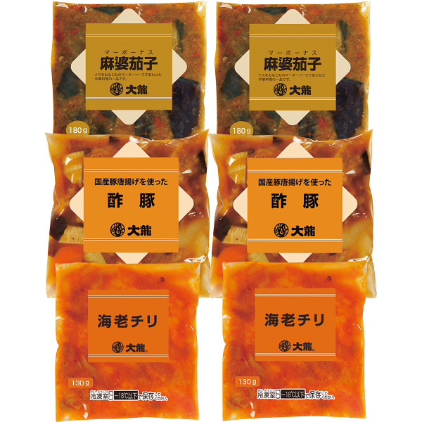 大龍 海老チリ・酢豚・麻婆茄子6食セット