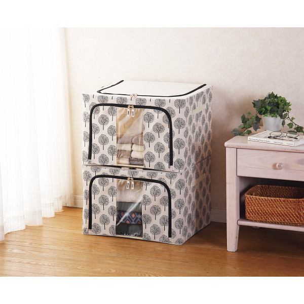北欧調柄スタッキング窓付き収納ボックス 2個セットデイツリー