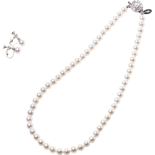●現品ネックレス=(全長)約42cm・約7mm珠・差込式留具、イヤリング=約7mm珠・ネジばね式留具