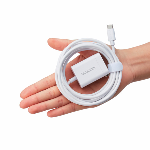 エレコム Type-C充電器 PD20W ケーブル一体型 2.5mホワイト