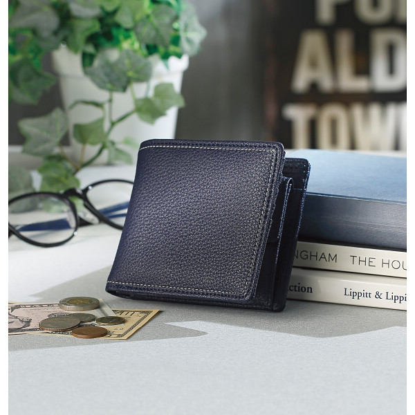 チェルベ ダブルステッチ二つ折財布ネイビー
