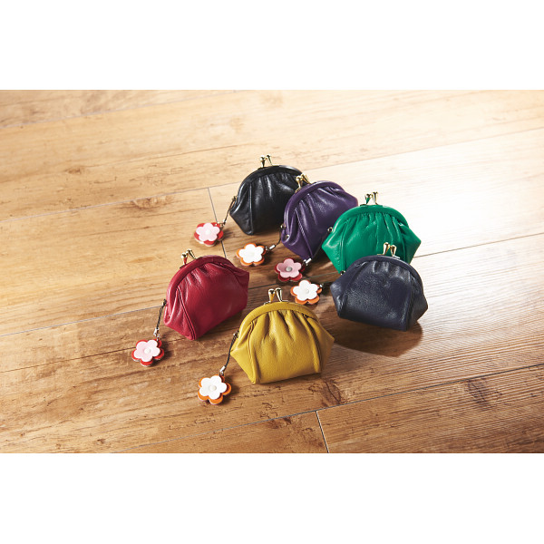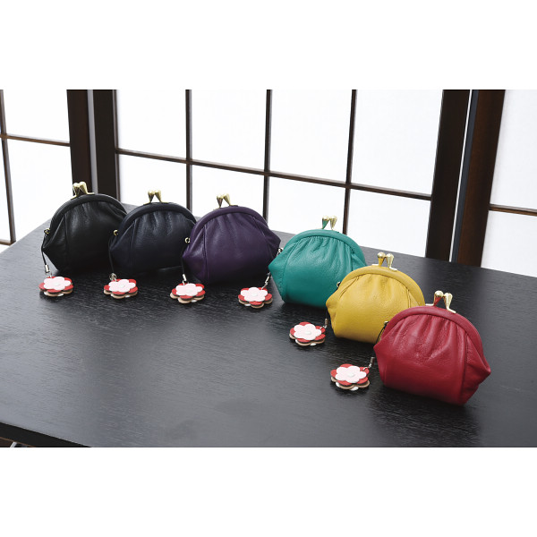 良品工房 日本製牛革がま口財布(ストラップ付)黒