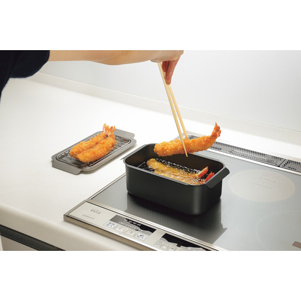 ポコフリット IH対応角型揚げ鍋(アミ付)