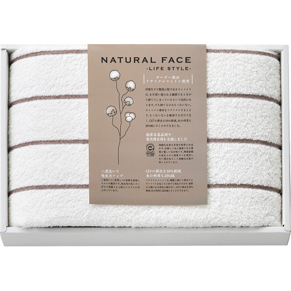 ナチュラルフェイス ボーダーバスタオルベージュ