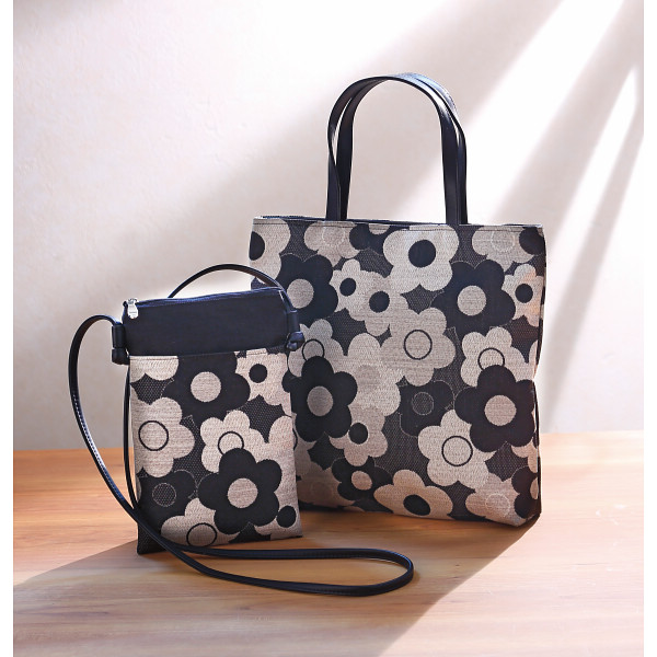 尾州織手さげ&スマホポシェットブラック