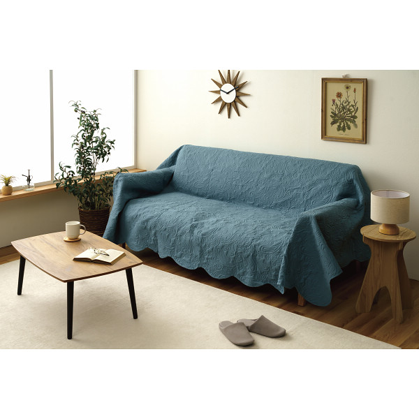 ペットと使える洗えるソファーカバーブルー
