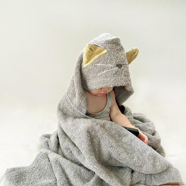 湯冷めしないように頭からすっぽりと被れるフード付きなので忙しいお風呂あがりはもちろん、新生児の時はおくるみに、大きくなったらプールや海水浴などの日除けにもお使いいただけます。新生児から小学生まで幅広い用途で大活躍してくれます。