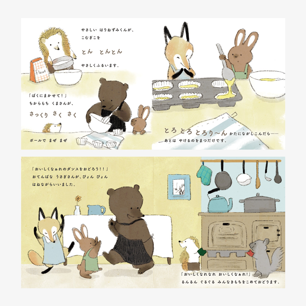 < あらすじ > きょうはぞうさんのお誕生日! はりねずみくんは森のおともだちといっしょにぞうさんが大好きなカップケーキを作ります。 こんこん ぱかっ とろとろ とろりん... 読み聞かせにも、まねっこ遊びにも。 耳ざわりのいい擬音もいっぱいのやさしいえほんです。 えほんの物語に沿ったぬいぐるみやおもちゃがセットになっているので、 小さな頃は音を楽しんで、少し大きくなったらまねっこ遊びや読み聞かせに...楽しく永く使えるおもちゃになっています。