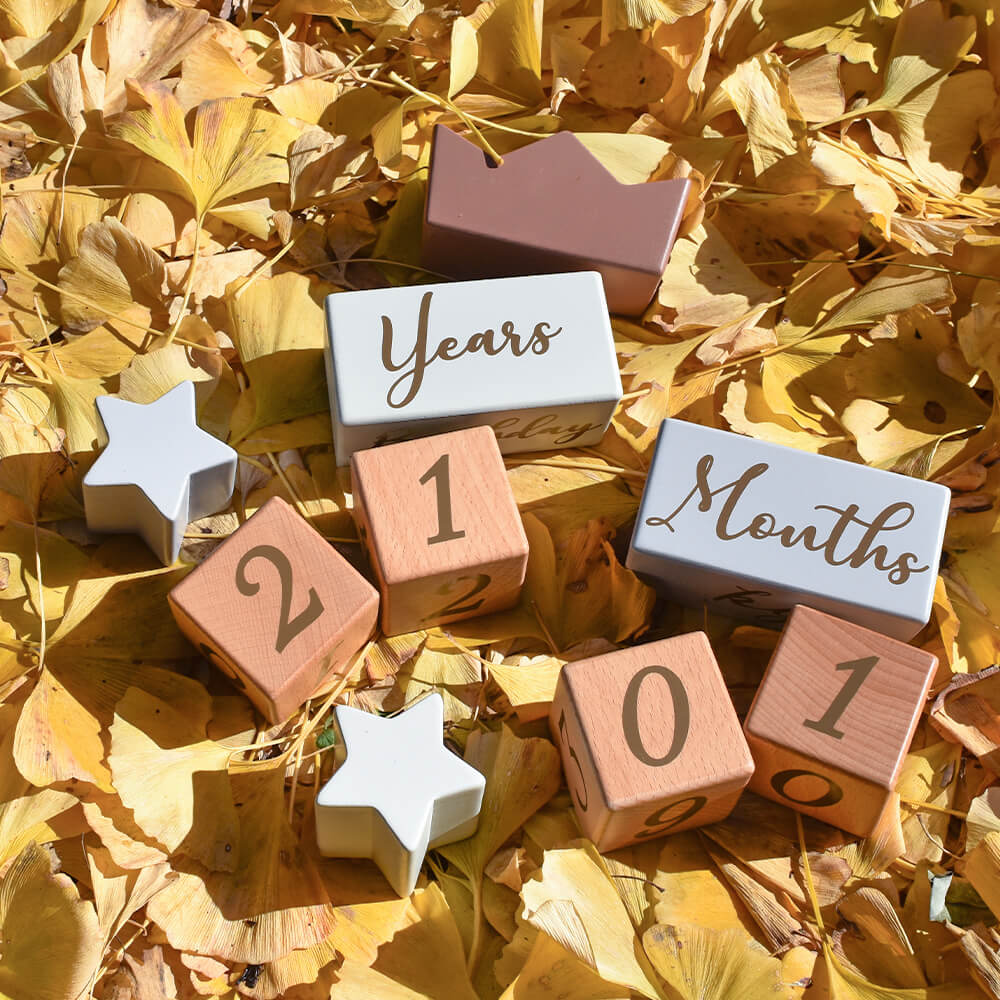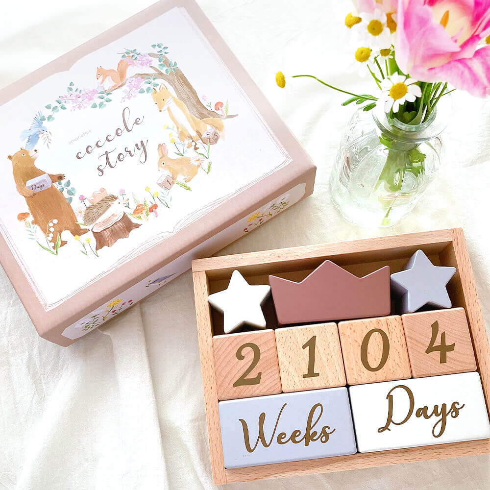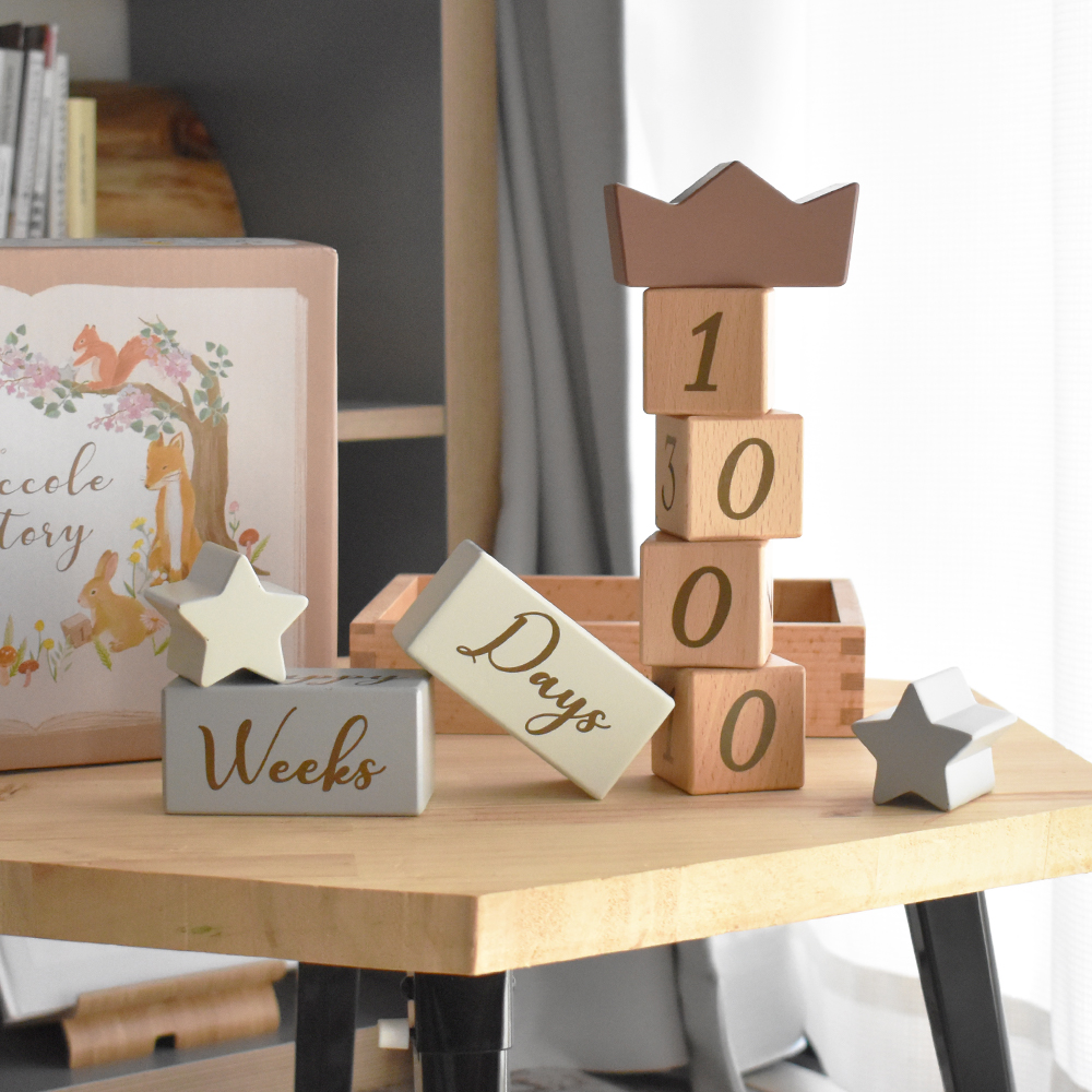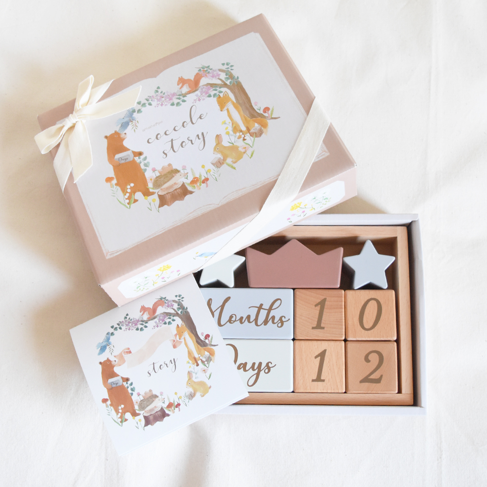 積み木として遊ぶだけでなく、もっともっと永くお使いいただけるように、たくさんの思い出を残せるように... コッコレストーリー(ここりー)は、365日の日付、身長、体重、時間などが表現できる、4桁の数字と英語と、それを彩る星と王冠の9ブロックのセットです。 毎日の成長記録やちょっとした記念日に写真を撮ったり、数字の勉強をしたり、その後もカレンダーとしてなど様々な使い方ができるよう工夫しました。