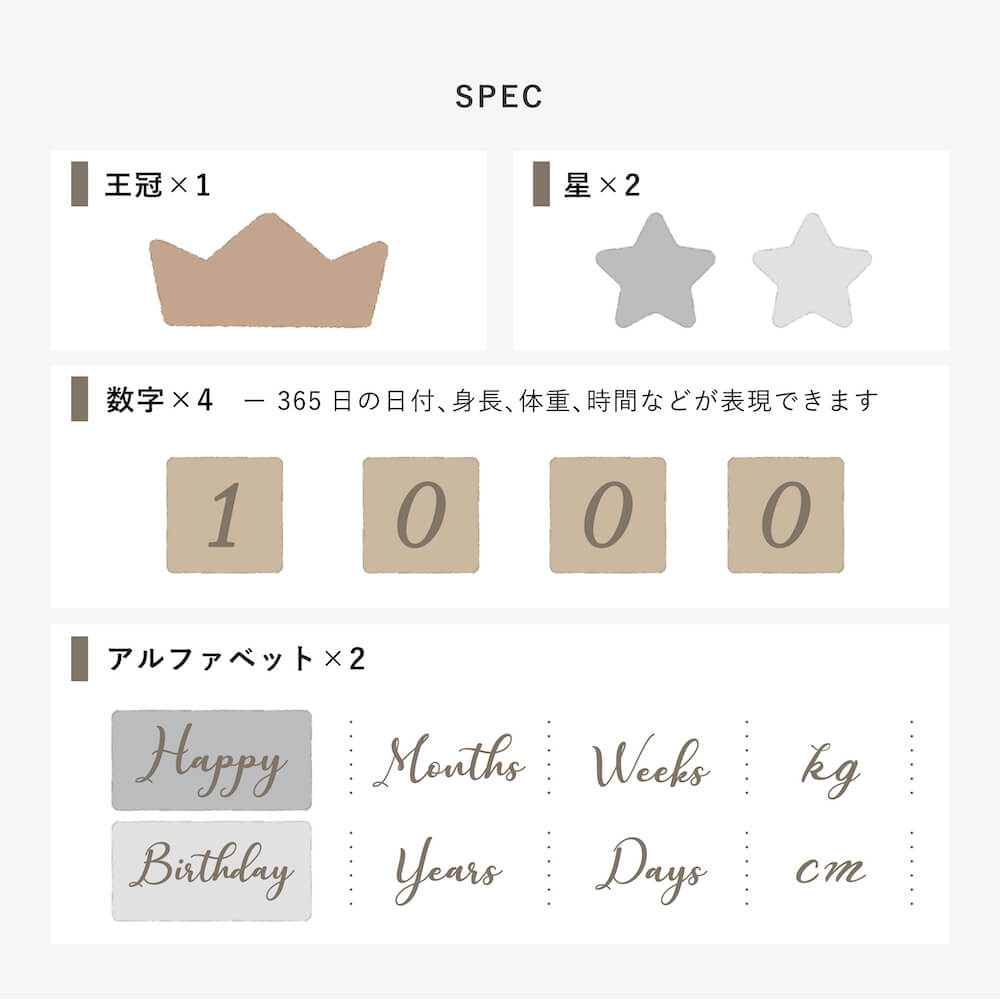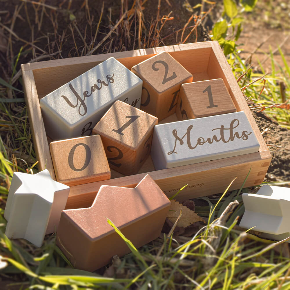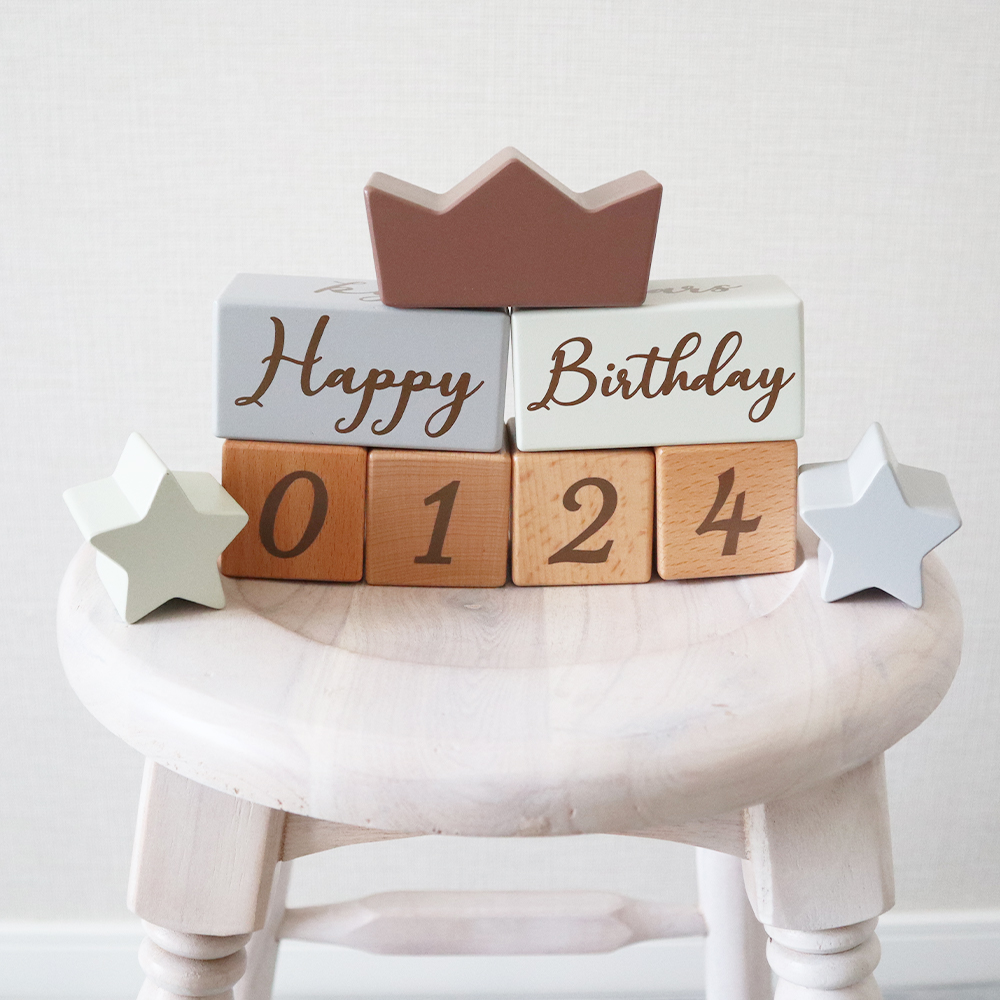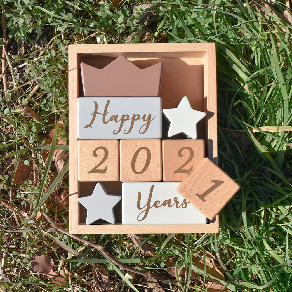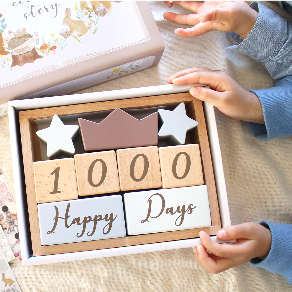 積み木として遊ぶだけでなく、もっともっと永くお使いいただけるように、たくさんの思い出を残せるように... コッコレストーリー(ここりー)は、365日の日付、身長、体重、時間などが表現できる、4桁の数字と英語と、それを彩る星と王冠の9ブロックのセットです。 毎日の成長記録やちょっとした記念日に写真を撮ったり、数字の勉強をしたり、その後もカレンダーとしてなど様々な使い方ができるよう工夫しました。