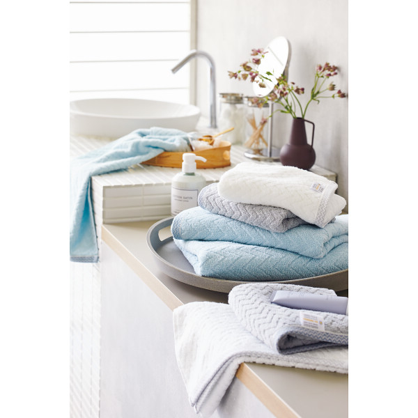 ナチュクル ふわふわ無撚糸 フェイスタオルブルー