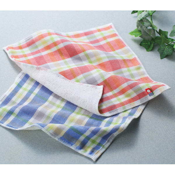 今治ガーゼ&パイルハンカチ(チェック)レッド