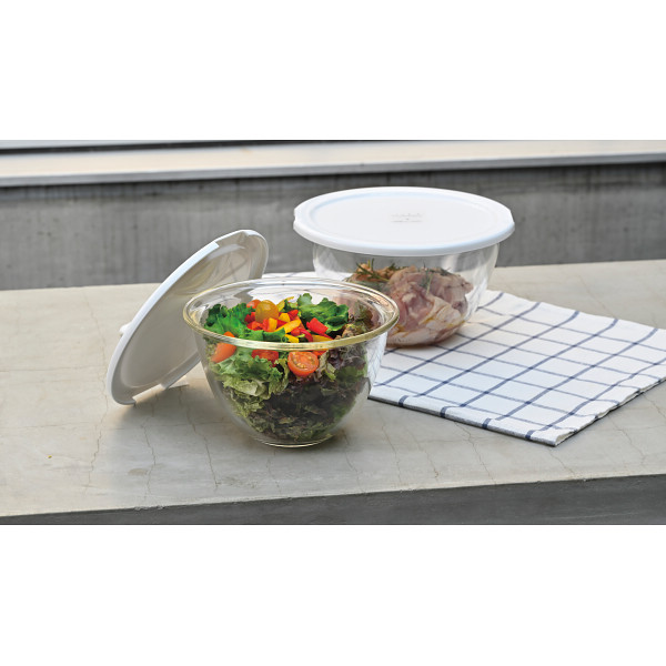 ハリオ レンジフタ付耐熱ガラス製ボウル2個セットホワイト