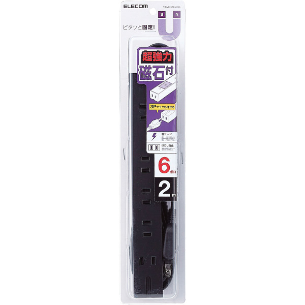エレコム 超強力磁石タップ 6個口(内3ピン1)2mブラック