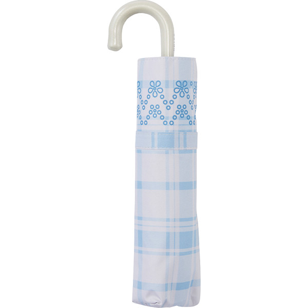 ビューティーシールド晴雨兼用折りたたみ日傘チェックペールスカイ