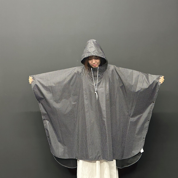 防災避難着&夜間交通事故防止 全身反射プリントポンチョ黒