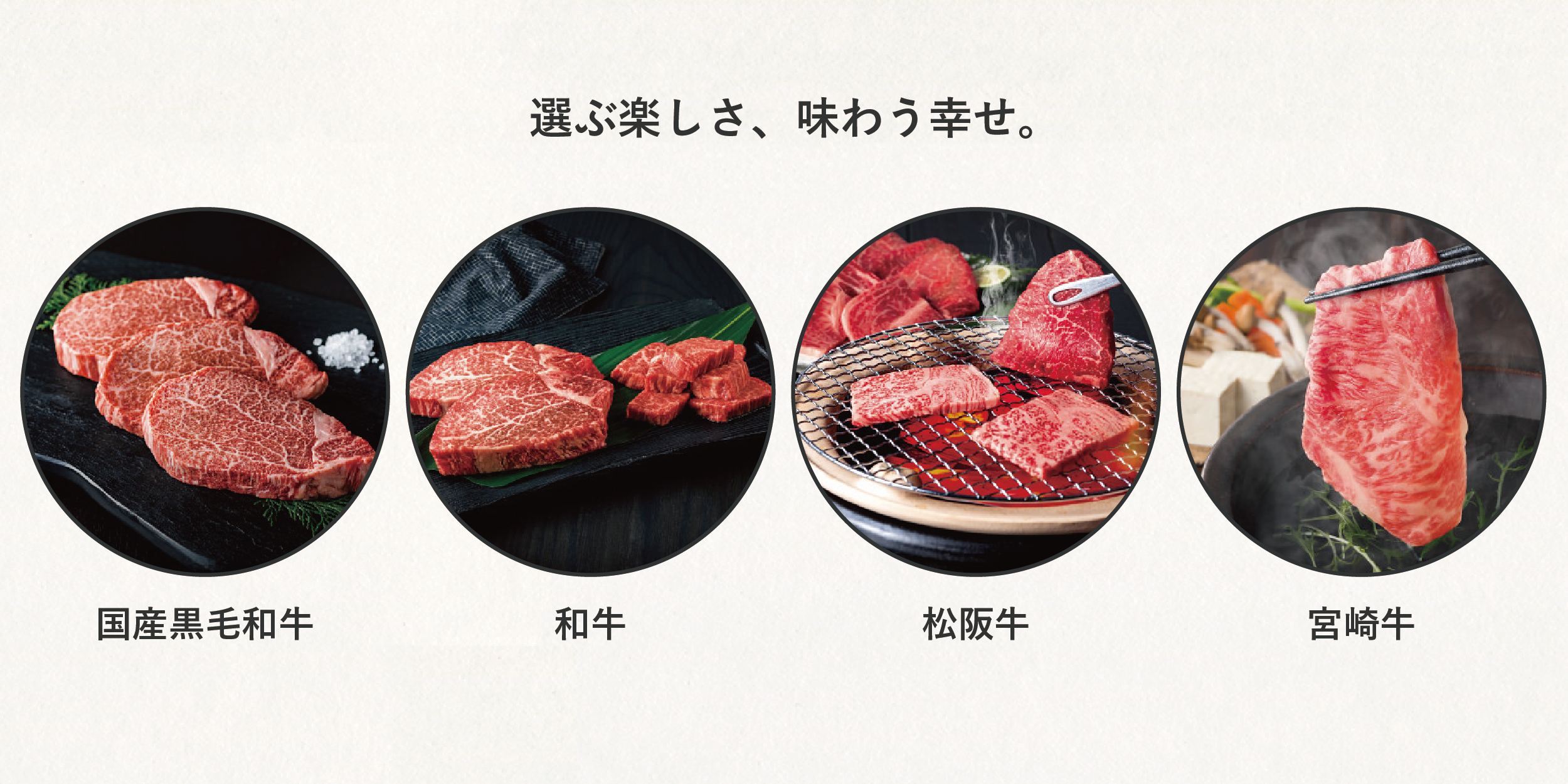 厳選された黒毛和牛・和牛・ブランド牛など、幅広いラインナップから選択可能。 写真を見ながら好きなお肉を選べるので、WEBカタログを開いた瞬間から楽しい時間が始まります。 ※写真はお肉の一例です。実際の商品は「カタログプレビュー」でご確認いただけます。