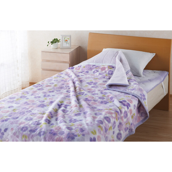 西川 衿付きニューマイヤー毛布ブルー